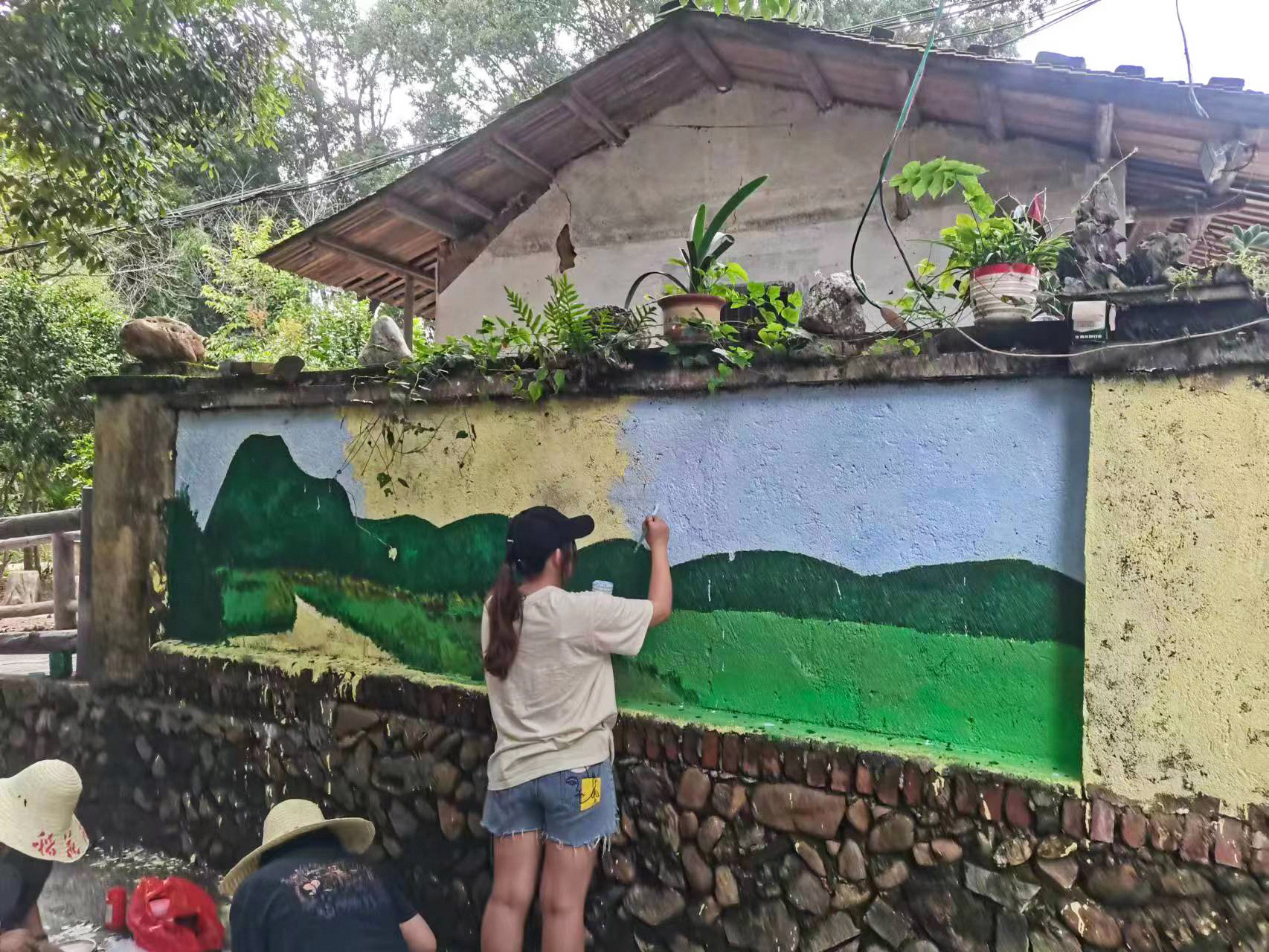图为实践队员现场绘画改造照片。中国青年网通讯员 李栋梁 供图