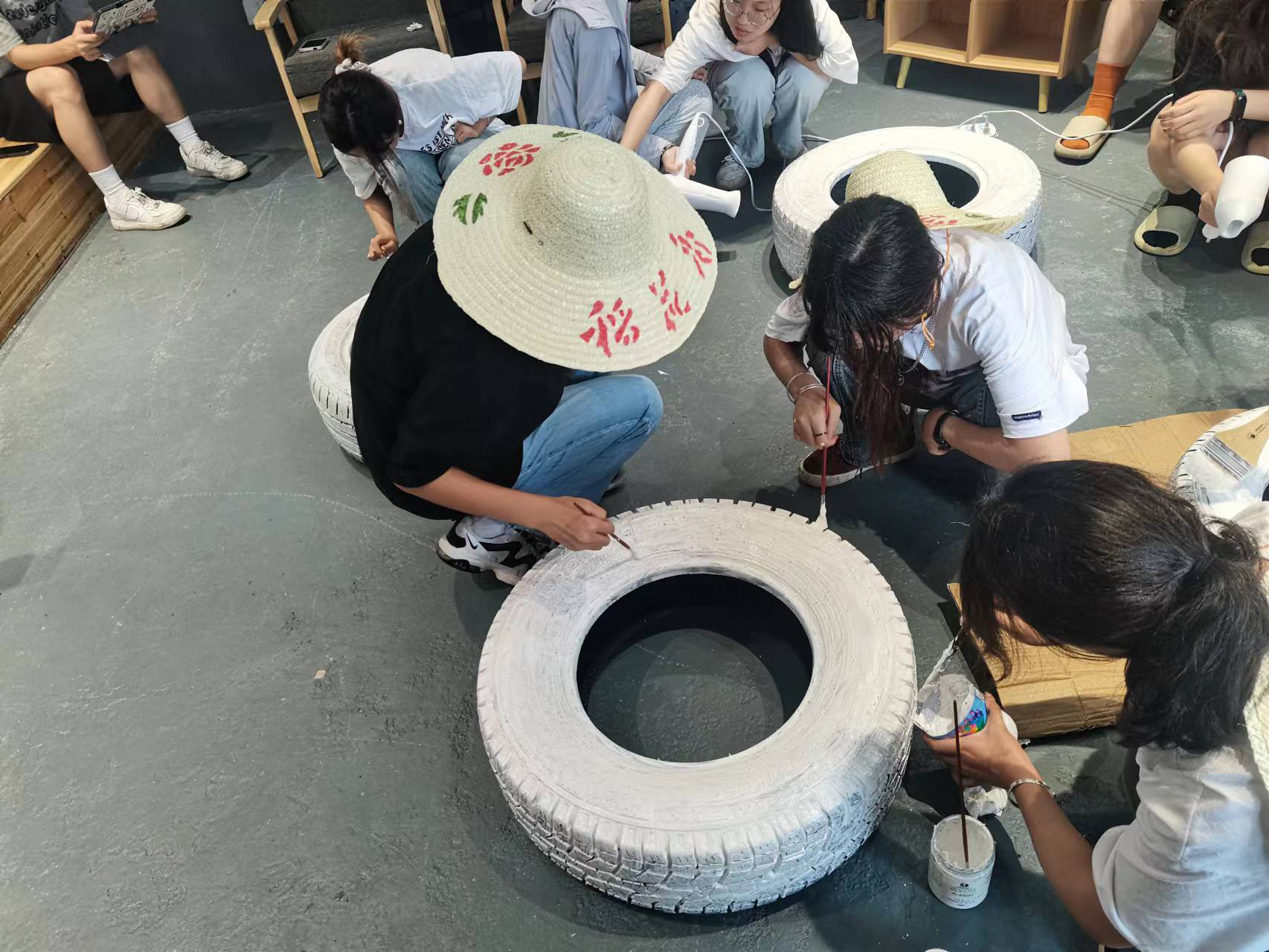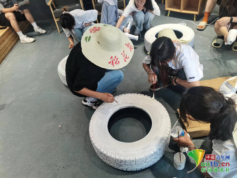 图为实践队员绘制改造轮胎图片。中国青年网通讯员 李栋梁 供图