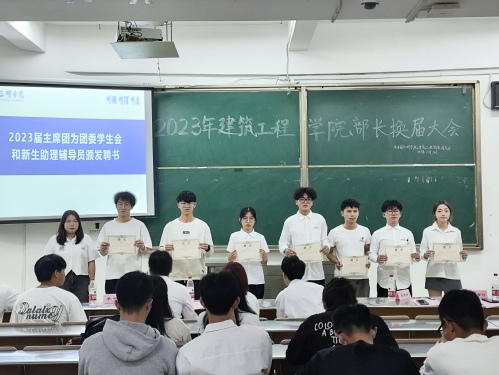 近日,建筑工程学院部长换届大会于博学楼举行。建筑工程学院全体辅导员、院学生会主席团成员及各部门负责人出席此次会议。