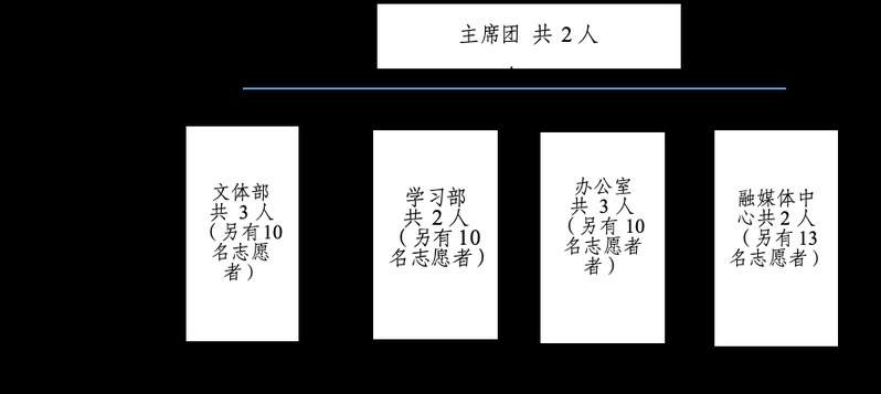 1.学生会委员会人数为10人,主席团成员不超过 3人,其中轮值主席1人。