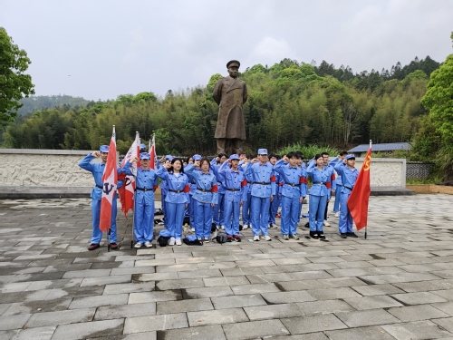 在御帘村,同学们身着红军服,先后参观了红色文化馆、东方军御廉司令部遗址、红军战地医院、廉政馆、乡愁馆,探访了彭德怀、杨尚昆故居,每一处历史遗迹都生动再现了先辈们不畏艰险、勇于革命的革命精神。在宣传馆,全体成员观看了御帘村宣传教育片,聆听御帘村“红色党建领航乡村振兴”的美好故事,切身感受历史文化底蕴和生态宜居设计之间的巧妙结合。参观结束后,同学们到彭德怀雕像前整齐列队,重温入党誓词,铭记党史铸辉煌,恪守初心担使命。