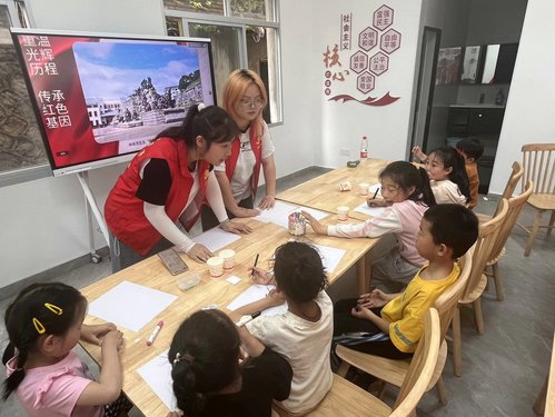 在红印山社区,志愿者开展了“红色精神代代传”活动。借助VR技术,志愿者为孩子们营造出身临其境的红色建筑之旅,让他们深刻感受到红色建筑的独特魅力和背后深厚的历史意义。同时,志愿者还教授孩子们建筑和景观的绘画技巧,指导他们搭建红色建筑乐高模型,进一步提升孩子们的艺术审美和动手能力。除此之外,志愿者还利用自己的专业知识,在社区设立了咨询点,为居民提供老旧小区房屋渗水等问题的专业咨询和现场勘查服务,真正实现了知识的实际应用和社区服务的完美结合。