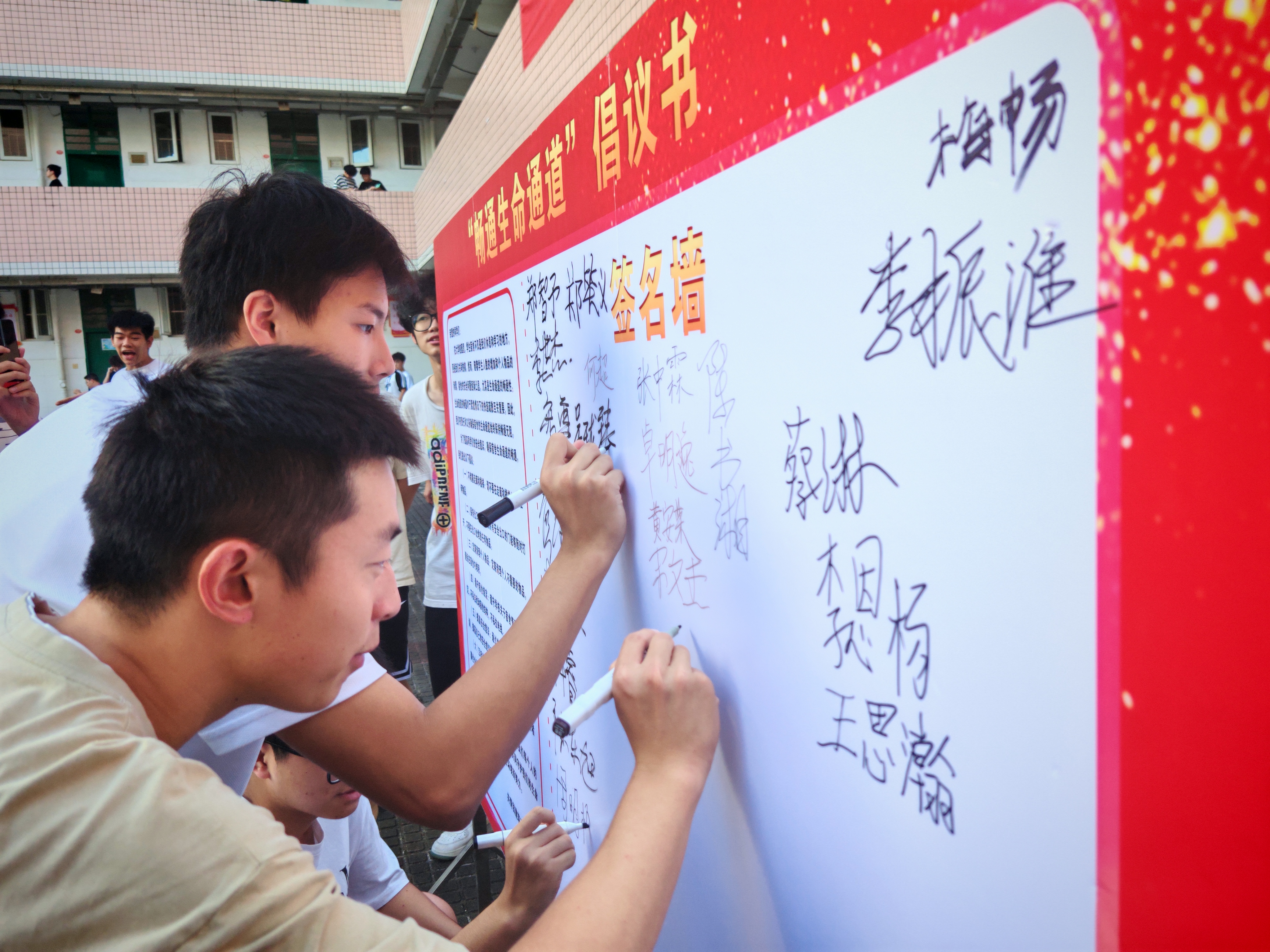 紧接着,由校安全保障中心同学周德镒讲解灭火器的正确使用方法和灭火技巧,让同学们牢记灭火器使用口诀——“提拔握压”。同学们耐心听讲并有部分同学亲身体验,加强了大家对灭火器使用方法的记忆,掌握了灭火要领。活动最后,学生代表宣读了“畅通生命通道”倡议书,同学们积极踊跃签名响应。