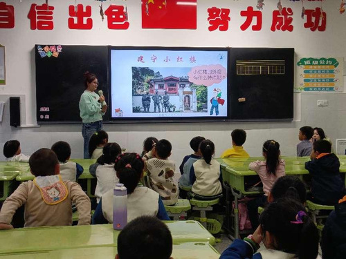 课程伊始,由红色建筑队队员担任的授课老师借助图片视频等资料向小学生小学生们展示了建立在中央革命苏区的红色建筑—建宁小红楼,建立在中央革命苏区——建宁的小红楼,帮助吸引小学生他们快速融入课堂,积极参与与课堂讨论互动。随后,队员们分别授课过程中介绍了小红楼的组成、发展历程以及旧址意义,挖掘其中的红色历史文化价值,由此提炼出革命战争时期红色建筑的深刻意义以及先辈们的奉献精神。