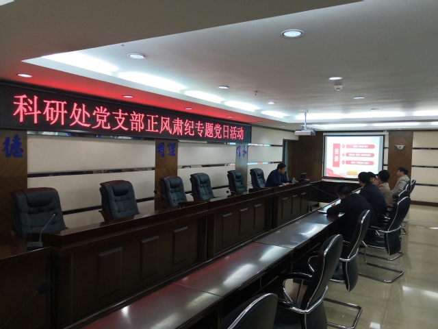 4月20日科研处党支部开展“以案为戒 正风肃纪”主题党日活动,科研处及学报编辑部全体教职工参与学习。
