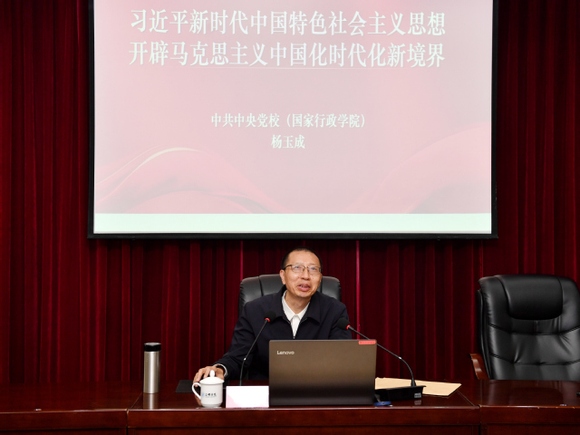 读书班邀请中央党校哲学部教研室主任、教授、博士生导师,中央党校理论创新工程首席专家杨玉成作《习近平新时代中国特色社会主义思想开辟马克思主义中国化时代化新境界》专题辅导报告。杨玉成教授从习近平新时代中国特色社会主义思想的创立历程、主要内容、世界观和方法论、历史地位以及如何学好用好习近平新时代中国特色社会主义思想等五个方面,对习近平新时代中国特色社会主义思想开辟马克思主义中国化时代化新境界进行全面系统解读。报告主题鲜明、脉络清晰、内涵丰富,对深入学习贯彻落实党的二十大精神具有很强的理论指导作用。