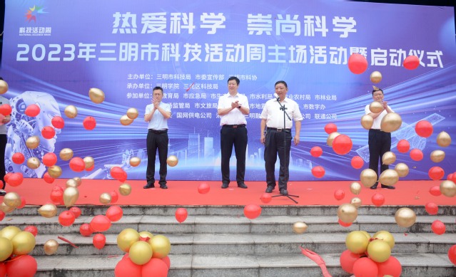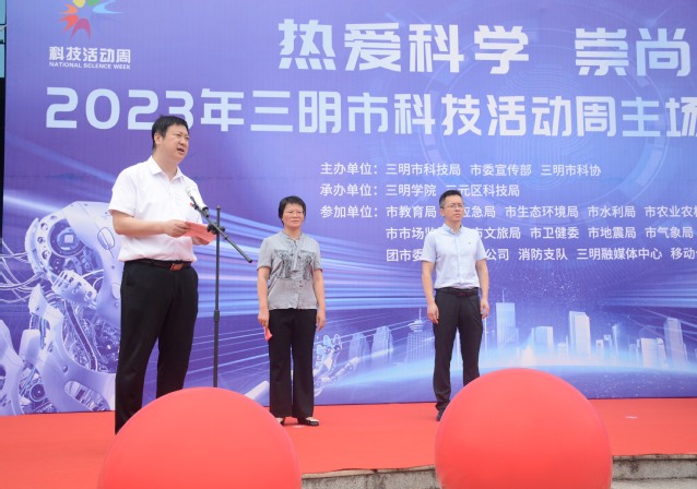 5月20日上午,2023年三明市科技活动周启动仪式在yl6809永利官网举行。yl6809永利官网党委委员、副校长吴龙,三明市科技局局长李荣安、副局长潘慧瑾,市科协二级调研员黄文海,市委宣传部四级调研员梁志峰出席活动。20个市直部门、企事业单位和yl6809永利官网师生代表共计400余人参加此次活动。