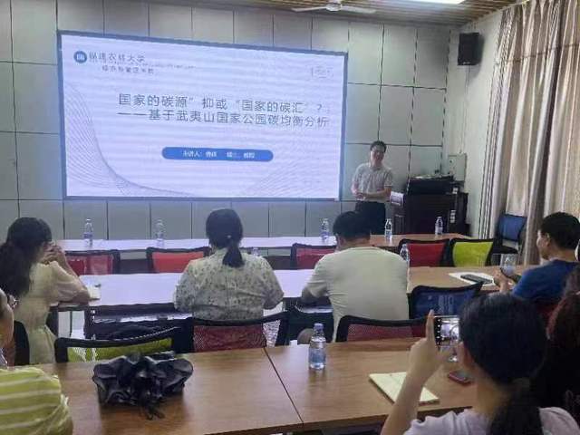 7月14日下午,福建农林大学曹辉教授莅临我院开展《国家公园:国家的碳源or国家的碳汇——基于武夷山国家公园碳均衡的分析》讲座,国家公园研究中心副主任李想、国家公园研究中心相关老师和学生参加会议。