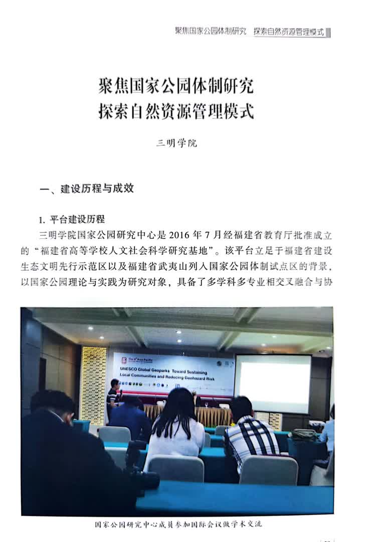 近日,由福建省社会科学界联合会编撰的《福建省哲学社会科学繁荣发展典型经验选编》印发,我校国家公园研究中心提交的“聚焦国家公园体制研究 探索自然资源管理模式”建设经验被列入优选案例。该案例主要分享了我校聚焦“两山”理论,在国家公园和生态旅游发展等领域,推进学科专业交叉融合的举措和经验。