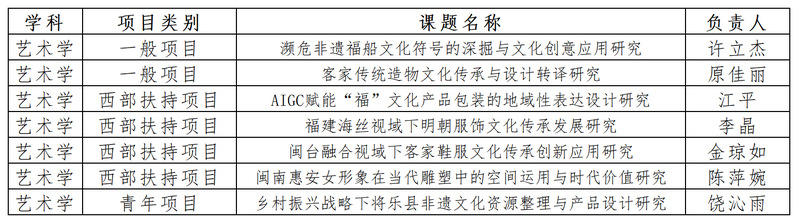 三引三提|艺术与设计学院7项课题获2024年度福建省社会科学基金项目立项