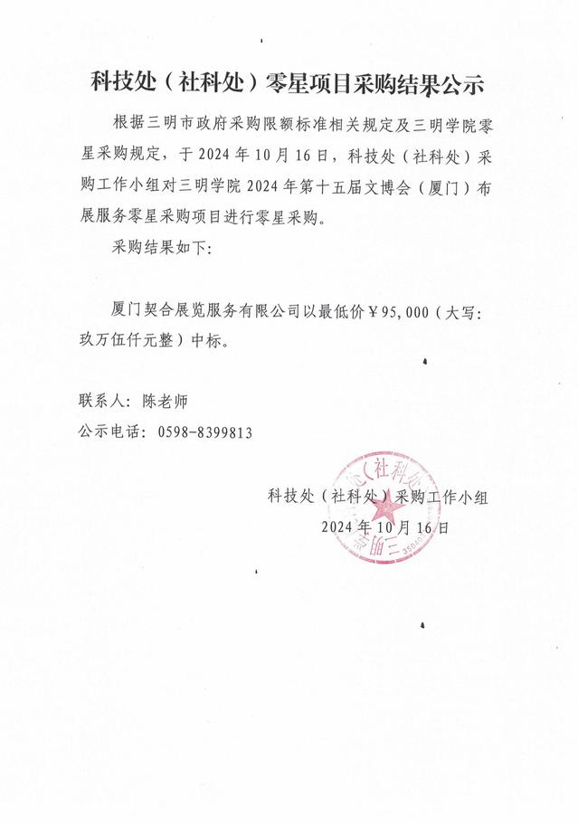关于yl6809永利官网2024年第十五届文博会(厦门)布展服务零星采购结果公示