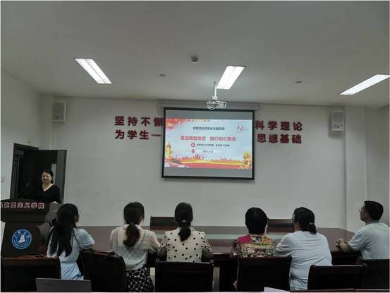 5月12日下午,马克思主义学院第一党支部在行政楼213开展党史学习教育之支部书记上党课活动。第一党支部书记石雪梅作了题为“重温辉煌党史,践行初心使命”的党史学习教育专题党课,支部全体党员参加。