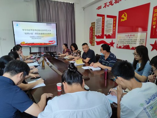 9月26日上午,马克思主义学院召开党总支中心组专题学习会议,会议集中学习了“习近平总书记给北京师范大学`优师计划`师范生重要回信精神”。