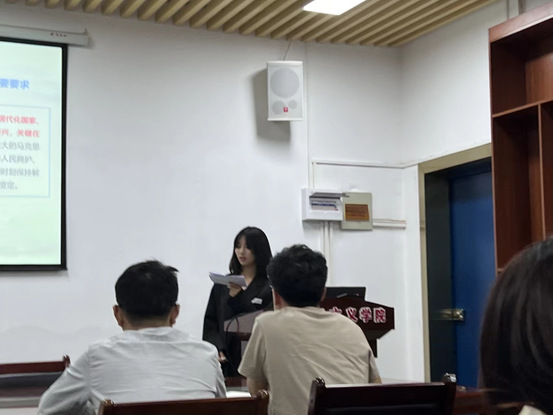 15名宣讲选手按照抽签顺序、在限定时间内分别进行宣讲。宣讲结束后,评委依次对比赛进行点评,并对各宣讲选手的表现给予了充分肯定,同时针对选手们在比赛过程中存在的不足提出相应的指导。最终,经过评委点评和打分,选择了综合成绩前11名的同学。