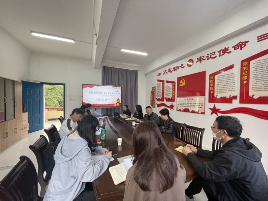 11月28日上午,马克思主义学院党总支中心组(扩大)专题学习党的二十大报告统战工作最新表述,院长邹晓芟进行领学。