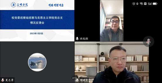 1月3日上午,校党委巡察组以视频会形式召开巡察马克思主义学院党总支情况反馈会。校党委委员、纪委书记、巡察工作领导小组副组长游龙桂出席会议并讲话,巡察组、巡察办有关同志,马克思主义学院党总支领导班子及全体教职员工参加视频会议,院党总支负责人邹晓芟主持会议并就做好巡察整改工作作表态发言。