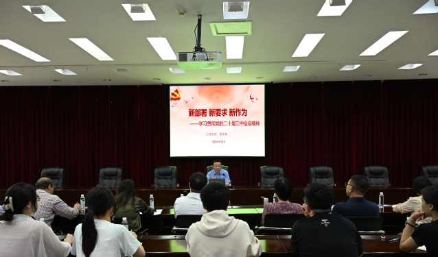 10月21日下午,校党委廖景榕副书记在行政楼八楼会议室,为艺术与设计学院、文化传播学院、马克思主义学院师生代表宣讲党的二十届三中全会精神。