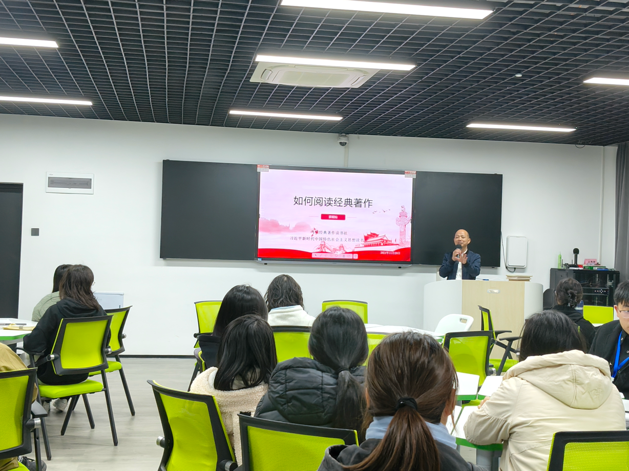 数字化时代,电子书、数字出版等形态越来越丰富,书籍的形态日新月异,在种类空前丰富的书籍中,如何圈定阅读目标,更需要深厚的积累和极高的技巧。读什么,对于每个人,显得格外迫切。11月29日晚,yl6809永利官网马克思主义理论读书社于理工二A智慧教室开展“如何阅读经典著作”的读书学习活动,马克思主义学院薛期灿老师主讲。