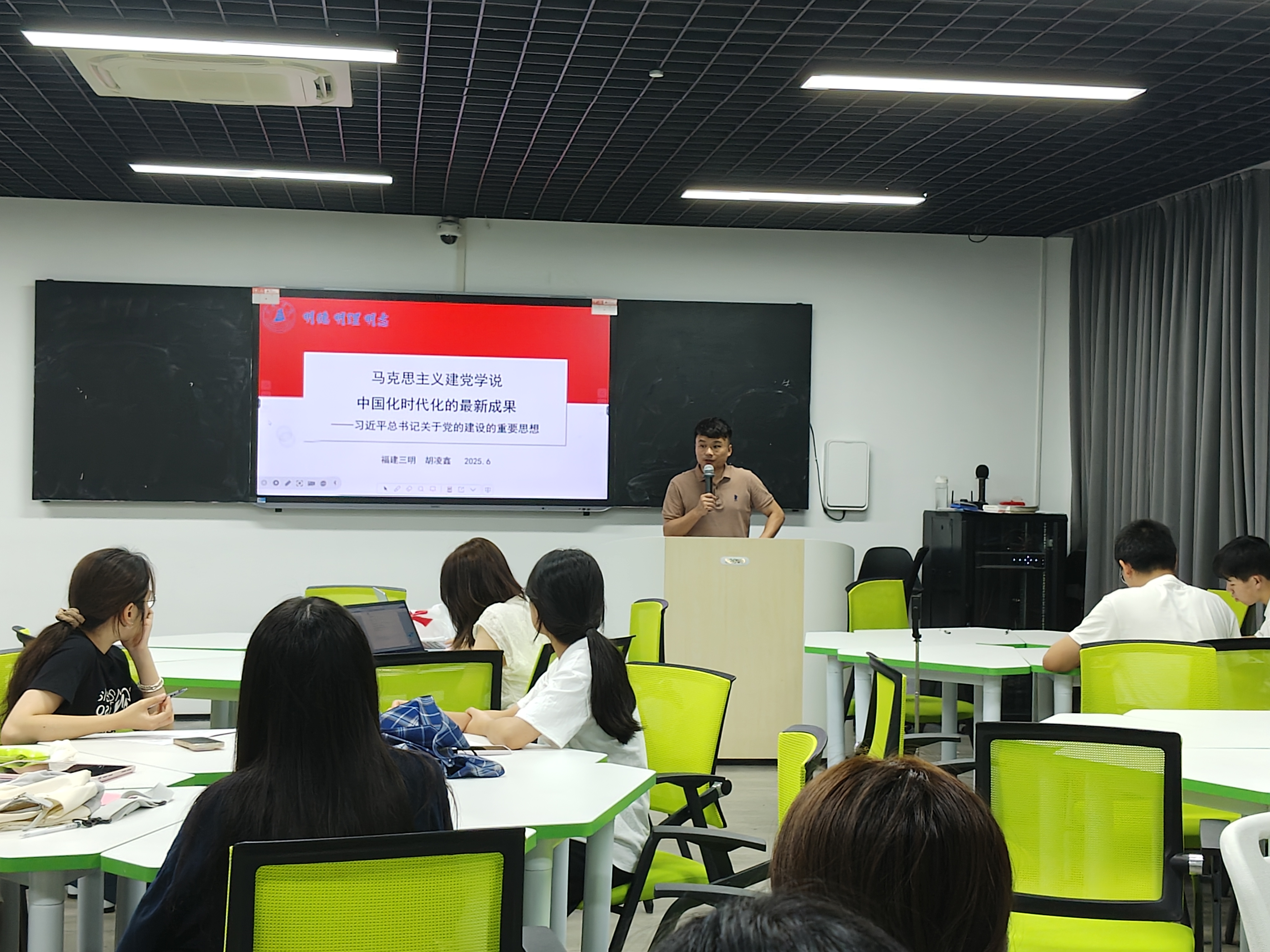 为推进学习贯彻习近平新时代中国特色社会主义思想走实走深,强化党史学习教育,6月10日,马克思主义学院胡凌鑫老师在明德楼智慧教室为习近平新时代中国特色社会主义思想读书社全体同学开展题为《习近平总书记关于党的建设的重要思想》专题讲座。