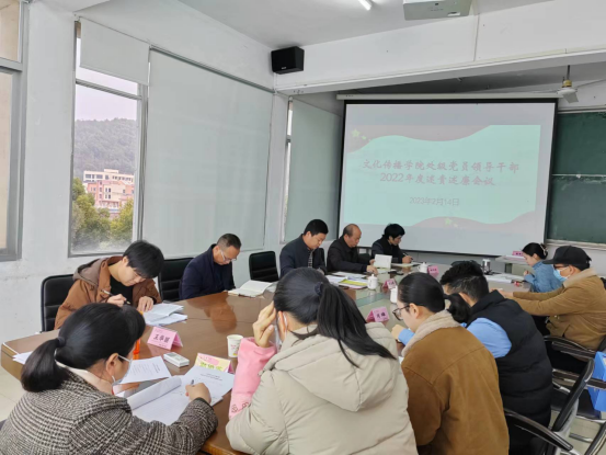 2月14日下午,文化传播学院党委2022年度处级党员领导干部述责述廉会在鸿文楼304室召开。学校纪检监察室工作人员到会指导。