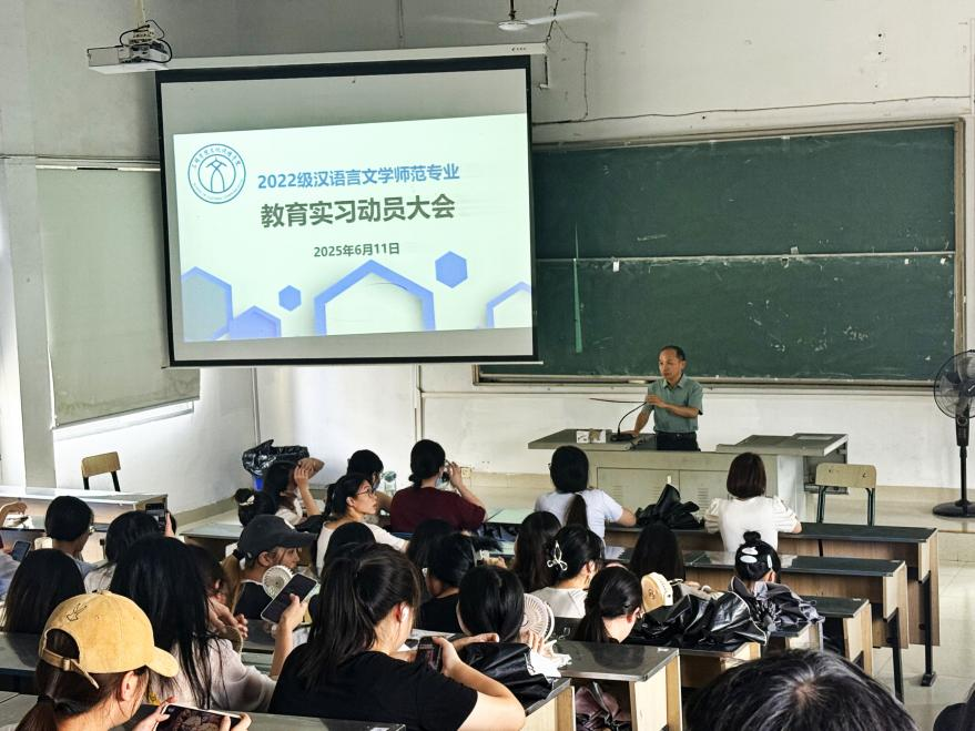 6月11日下午,文化传播学院在鸿文楼(一)201室召开2022级汉语言文学师范专业实习生的教育实习动员大会。