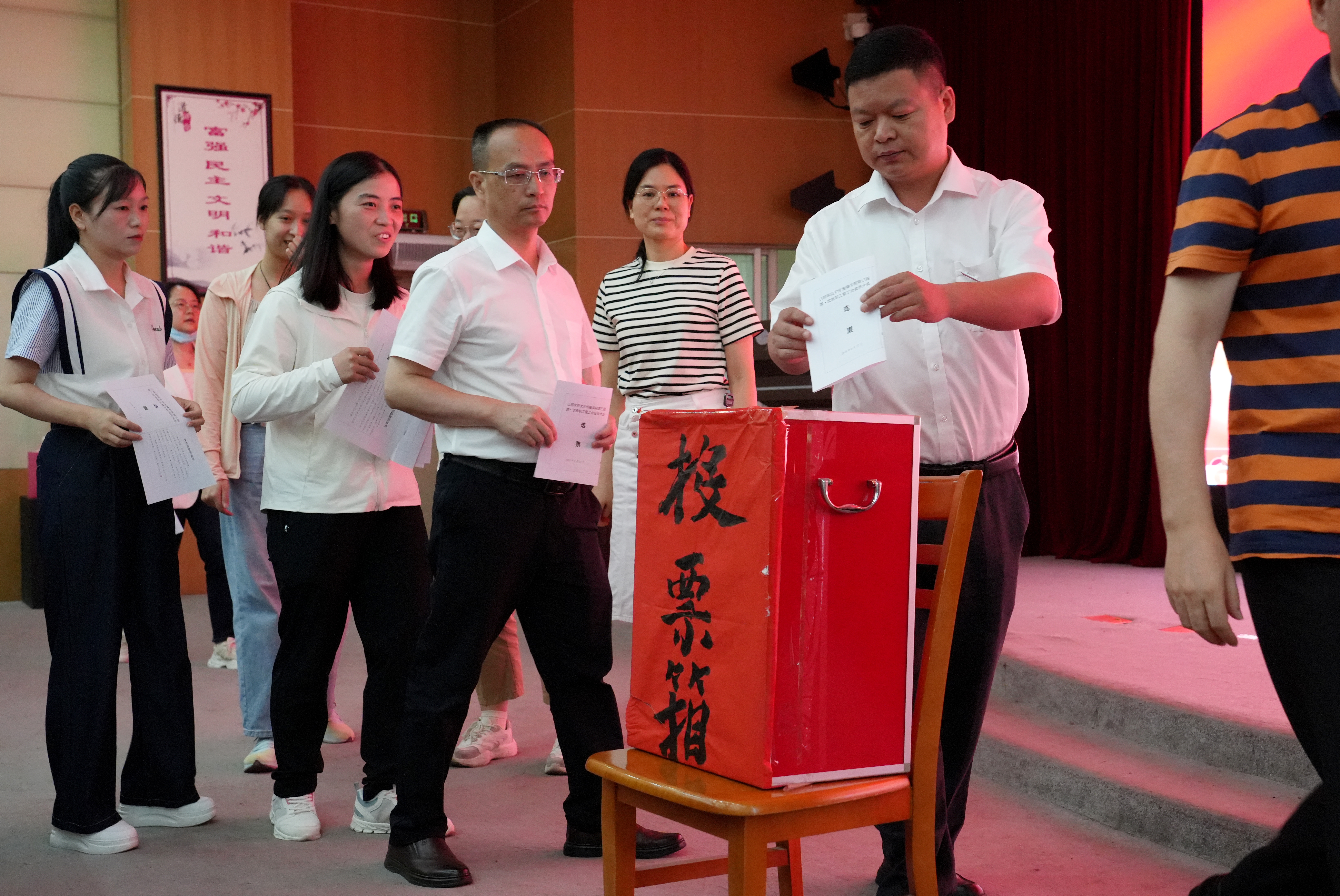 大会以无记名投票选举产生了文化传播学院工会委员会新一届委员,选举范桂英为第三届工会主席,黄晓珍为副主席;并通过了女职工委员会委员名单,范桂英为主任。