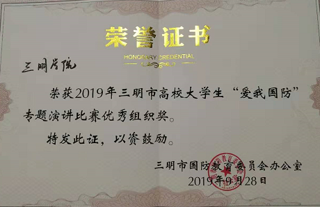 9月28日下午,2019年三明市高校大学生“爱我国防”专题演讲比赛暨全省主题演讲比赛三明赛区选拔赛在我校举行。校党委委员、副校长谢松明教授,三明军分区政治工作处主任、三明市国防教育委员会办公室主任林声海上校出席活动现场。