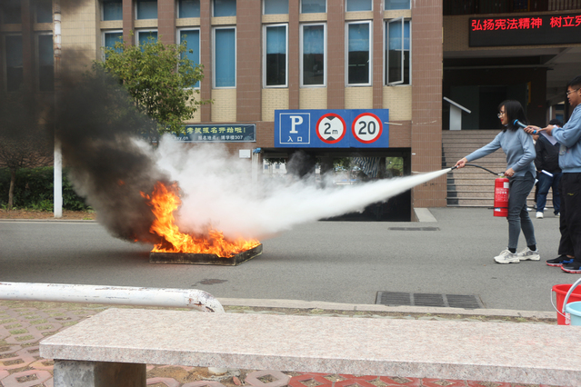 本次安全演练分为疏散演练与灭火演练两个部分,校保卫处提前精心布置,把各项工作落实到位,确保每项工作安全有序地开展。伴随着烟雾升起和消防警报声的响起,疏散演练正式开始。所有参与人员用湿毛巾捂住口鼻,安全、快速、有序地撤离到北区篮球场,各班班长迅速检查人数,确保每一名学生都已安全撤离。接着,相关人员示范了灭火器的使用方法,并挑选出学生代表进行现场模拟操作,使同学们都能正确掌握灭火器的操作方法。