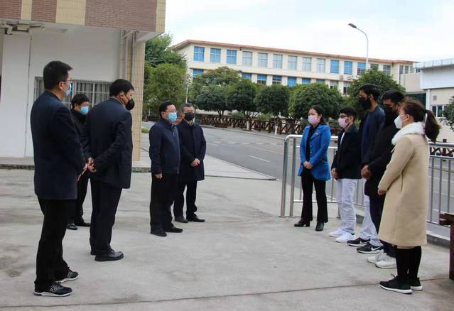 校领导一行先后走访校北门口、实验楼、图书馆、校医院、南门口、物业办公区、534沿线防护带、学生宿舍、第一食堂、留学生公寓等地,实地检查疫情防控工作开展情况,慰问值班值守人员和留校国际学生,并研究细化近期学校疫情防控、教学准备的工作方案。