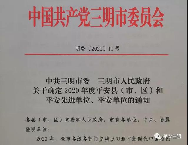 日前,三明市委、市政府表彰了2020年度平安建设(综治工作)先进单位和平安先进县(区)(明委【2021】11号),yl6809永利官网荣获“2020年度三明市平安先进单位”荣誉称号。