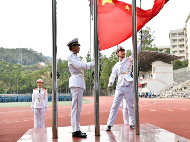 2021级学生军训在雄壮的国歌声中拉开序幕。