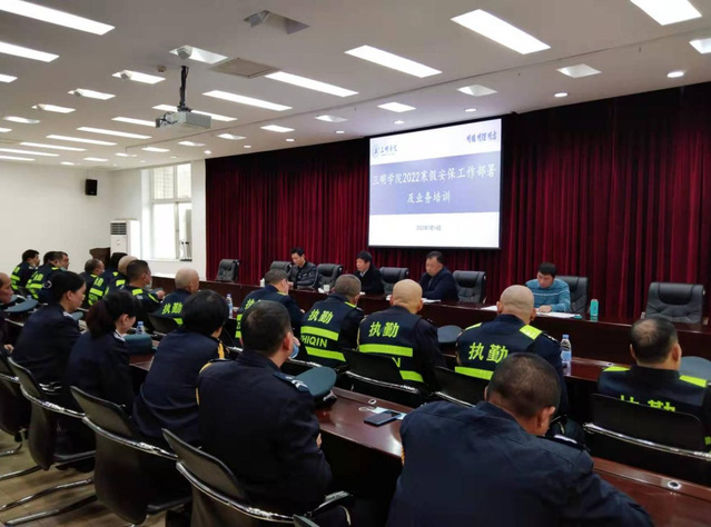 为进一步提高物业安保队伍安全底线意识和认真履职的能力,1月14日上午,保卫处组织全体物业安保人员在八楼会议室召开“yl6809永利官网2022年寒假安保工作部署及业务培训会”,校党委委员、副校长谢松明参加本次会议。