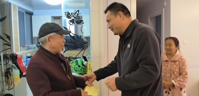 在保卫处退休职工黄福康、何元呈、林志成等家中,范钦龙处长、陈凡副处长与他们亲切交谈,详细询问了他们的身体和生活状况,为他们送去了慰问品,表达了组织的关怀。