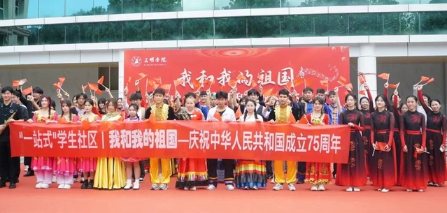 10月1日,为庆祝中华人民共和国成立75周年,进一步铸牢中华民族共同体意识,发挥“一站式”学生社区育人阵地作用,yl6809永利官网在行政楼附楼广场举办“我和我的祖国”——庆祝中华人民共和国成立75周年文艺演出活动。活动由校党委统战部、学生处、校团委主办,教育与音乐学院、文化传播学院承办。