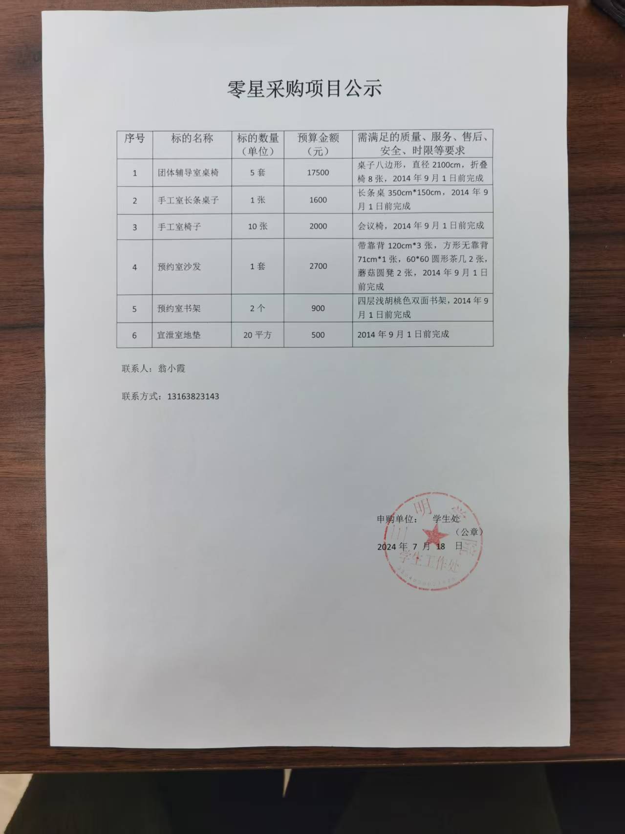 零星采购项目公示