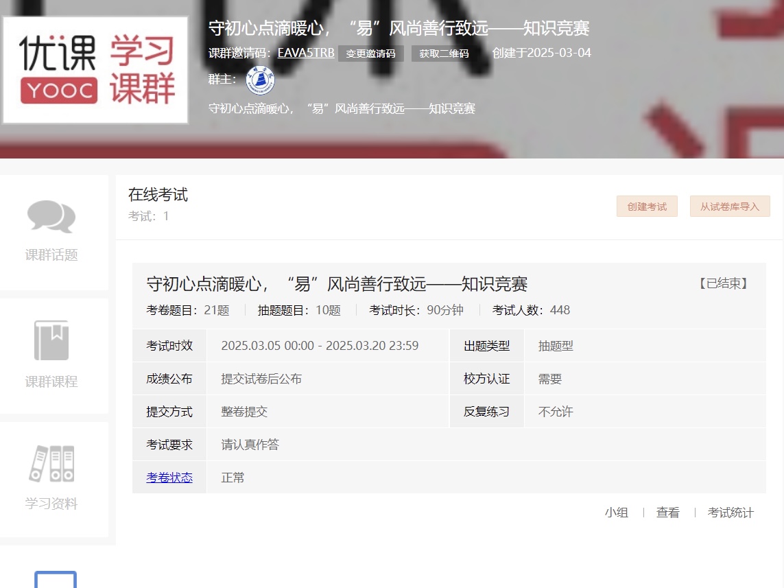 5月8日至5月20日,“守初心点滴暖心,“易”览千年劳动经验,智慧挑战“技”往开来知识竞赛活动正如火如荼地进行着,此次竞赛采用“线上题库+随机组卷”模式,设置单选、多选、判断等题型,涵盖劳动法规、安全规范、工匠精神等内容。活动一经发布,便吸引了448人次参与,明院学子们通过互动式答题完成了从知识习得到技能内化的进阶式培养。“竞赛不仅是对知识的深度检验,更是对‘劳动创造幸福’理念的深刻认同。”24级网络空间安全专业学生刘靖桥感慨道。