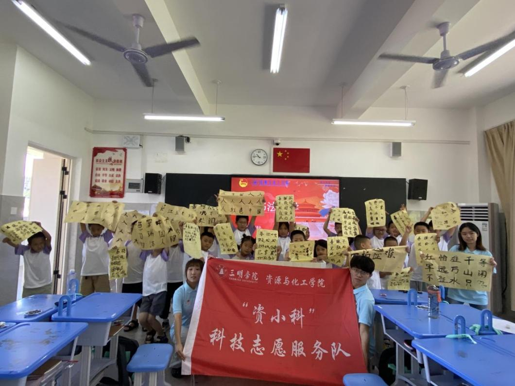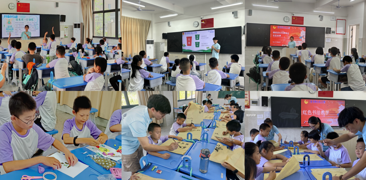 首次授课中,“资小科”志愿服务队为60名学生带来清流县革命历史讲解、红色主题书法写作以及环境保护与垃圾分类知识宣讲课程。