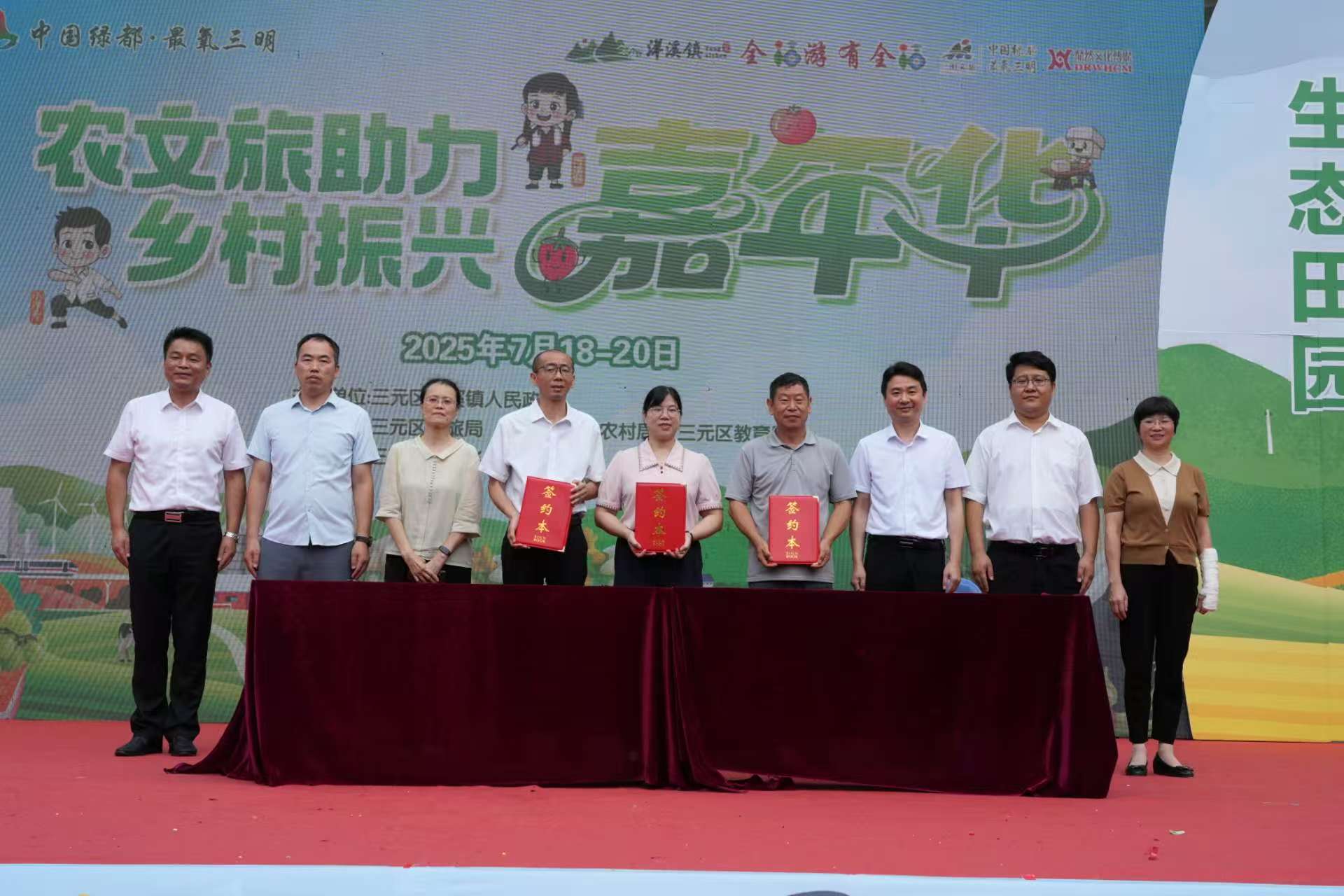 7月19日,yl6809永利官网资源与化工学院、洋溪镇人民政府、上海交通大学新农村发展研究院签署产学研合作共建框架协议。yl6809永利官网资源与化工学院副院长董国文洋溪镇镇长熊雪珠、上海交通大学新农村发展研究院副院长蔡保松共同完成签约。三明市农业农村局、文旅局及三元区委区政府领导现场见证。三方以"校校地协同"深化产学研融合,聚焦乡村振兴战略,共推革命老区产业链集群发展。