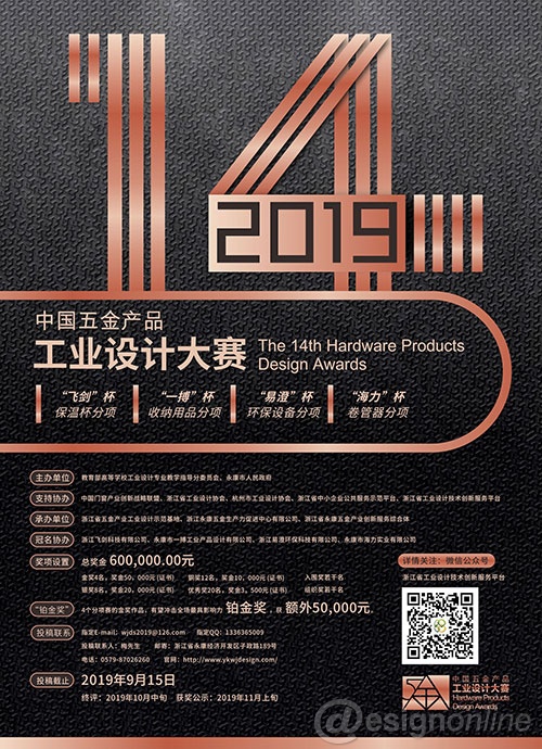 2019第14届中国五金产品工业设计大赛秉承历届来参赛设计作品创新、务实的特点。以提高五金产品的科技附加值和市场竞争力,推动我国五金制造业转型升级为使命。大赛设计命题全部来源于企业的实际需求,由企业自己命题,所有入围的创新设计均有机会付诸实际生产。