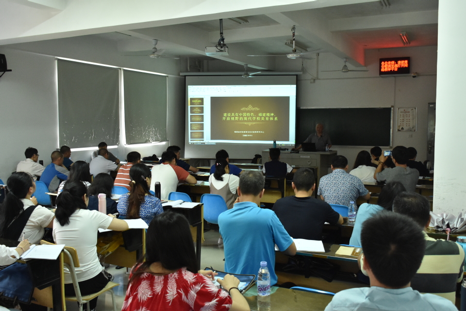 开班式后,王福阳教授为学员作《解读我国学校美育改革与艺术教育发展的新格局》的专题讲座。本次培训班包括集中研修、在岗实践、总结提升三个阶段。本次为第一阶段培训,培训内容包括专题讲座、教学观摩和实践操练,通过助力乡村美术老师教学技能提升和树立现代美术教育教学理念,全面提升乡村学校教学质量,进一步提升乡村初中美育工作能力。