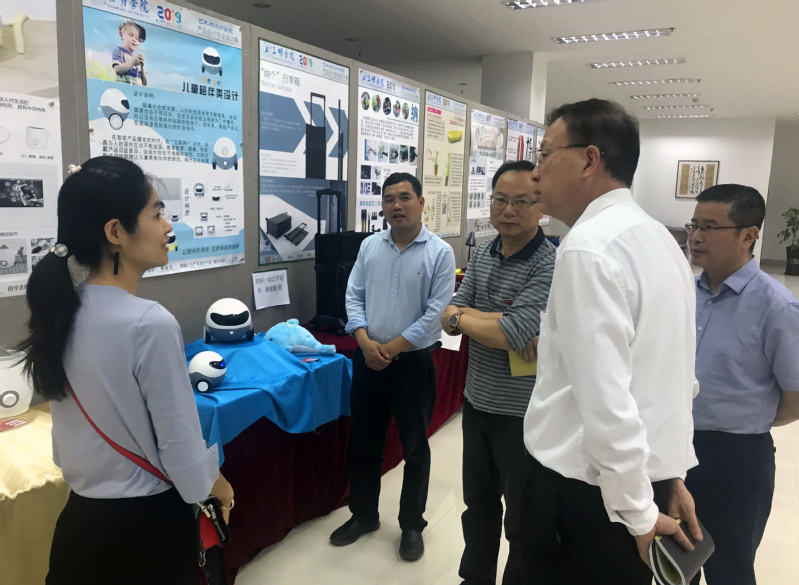 艺术与设计学院在图书馆一楼展览空间进行了为期一周的2019届毕业作品展。校领导刘健、张君诚、赖锦隆到场观看。这场以“致用”为主题毕业作品展由产品设计系、动画系、美术学系共同展出。