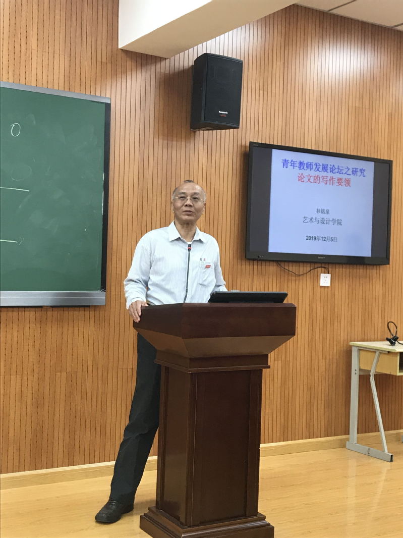 2019年12月5日下午,艺术与设计学院林铭泉教授为青年教师作题为“研究论文的写作要领”的专题报告。报告由艺术与设计学院副院长林平主持,该院青年教师代表30余人到场聆听。