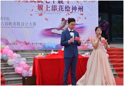 12月20日上午,艺术设计学院鞋类设计协会在逸夫图书馆门前举办第六届“辉煌成就七十载,履上添花绘神州”帆布鞋创意设计大赛作品展。艺术设计学院党政领导,服装与服饰设计系专业老师及参赛选手参加活动。