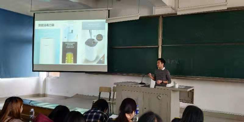 艺术与设计学院产品设计的学生们向来不缺“点子”,但“点子”是否能够经受来自行业项目的考验?在校内课程导师伊林春,文艳群、王林的讲解中,让学生对智能卫浴产品设计的原则与方法了然于胸;而后在大白科技有限公司董事长林凯,总经理尹艳梅、首席设计师历林忠和总工程师施开亮、设计师吴谋倍,陈帆、陈联志等企业教师的帮助下,学生们对智能卫浴产品的升级优化进行深入探讨与实践指导。在校内外“双师”的指导下,2017级产品设计学生完成了智能化功能、多样化造型、多元化材质等多个智能卫浴产品设计方案。