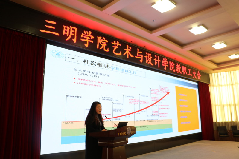 2019年12月25日星期三下午3:40分,艺术与设计学院于图书馆四楼学术报告厅召开艺术学科建设与硕士点申报工作汇报会,全体教职工参加此次会议,本次会议由党委书记罗奋涛和院长邱国鹏主持。