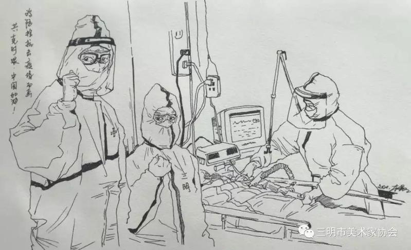 以“画”聚心,共同战“疫”。新型冠状病毒感染的肺炎疫情牵动全国人民的心,也牵动艺术与设计学院广大美术爱好者的心,大家纷纷响应省文化旅游厅、美协、市美协关于倡议踊跃创作抗击疫情主题美术作品的通知,师生积极“用心、用情、用爱”创作,用创作共筑防病抗疫的保护墙。目前被三明市美术家协会采纳刊发作品10余幅。作品体现了歌颂医护工作者等一线抗击疫情的英雄们,弘扬抗击疫情过程中涌现的各种正能量。艺术与设计学院师生用手中的画笔记录新时代最美中国人,描绘万众一心、共克时艰、共同战“疫”的新时代壮举。