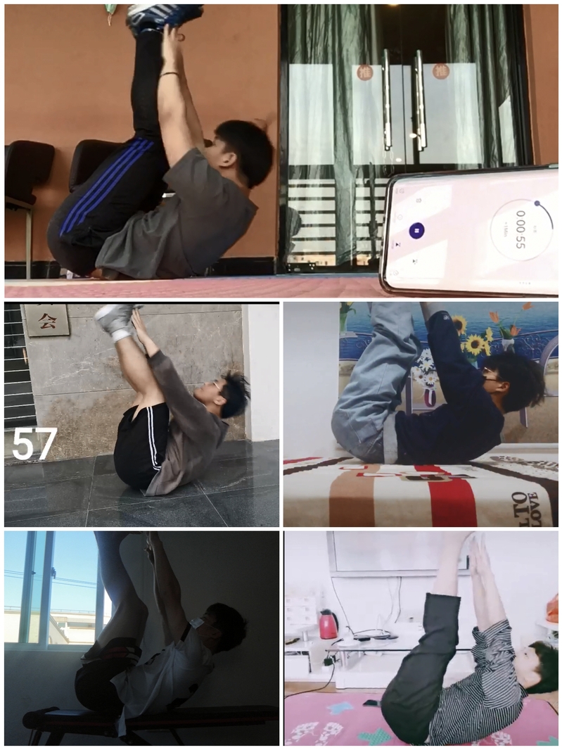 “强国须强民,强民须强身,强身须强练。”运动是青春活力最好的体现。“弘扬五四,绽放青春”趣味运动挑战主题活动要求同学们利用现有的条件和场所,在家中开展体育锻炼,在室内开展趣味运动挑战。挑战以宿舍、小组等为单位,发起卷腹运动项目倒计时挑战活动。让同学们在家也不忘锻炼,积极参与运动,尽情享受运动,释放青春活力,感受运动带来的快乐。同时也激励了广大团员青年继承和发扬五四运动的光荣传统,加强了广大团员青年德育教育,进一步学习实践了科学发展观。