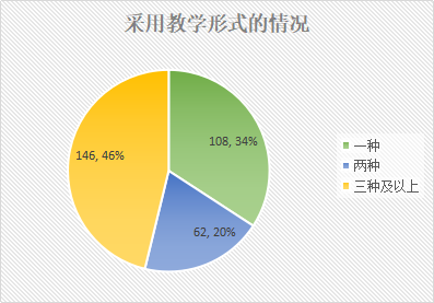 开学第3周,根据“应开尽开”原则,我院各专业本周应开必开课程316门次。从收集的《网络在线教学运行情况教师反馈表》情况来看,我院教师选用2个及2个以上网络教学平台的共计294门次占到了93%;采用多种教学方式的课程208门次占到了66%,特别是采用直播方式进行教学的比例达到了72.2%。