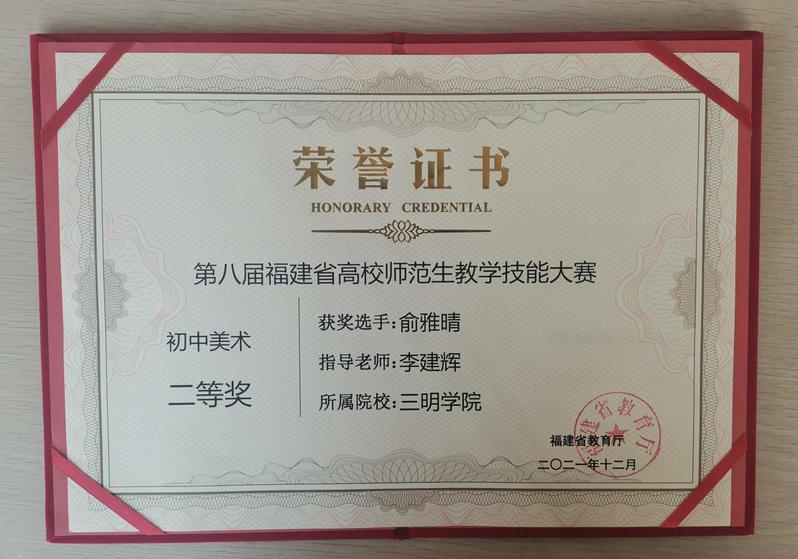 2021年10月至12月,由福建省教育厅主办的第八届福建省高校师范生教学技能大赛在福建师范大学举行。共有来自全省高校数百名选手参赛。艺术与设计学院选派2018级美术学专业俞雅晴同学参加初中美术组别竞赛。