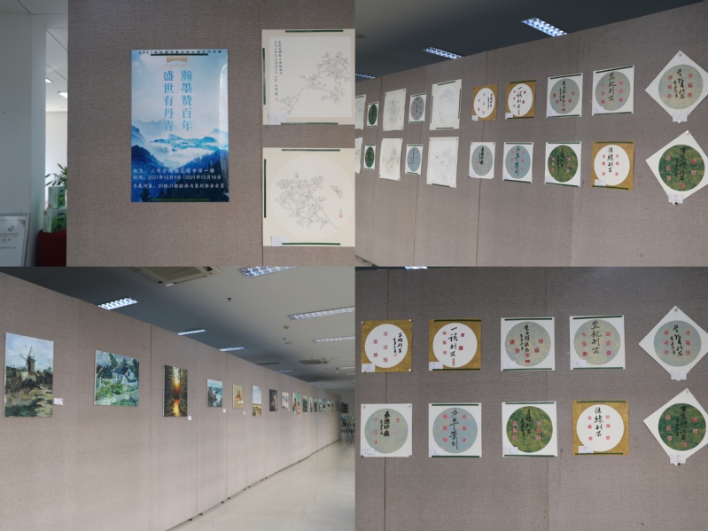 12月9日至16日,艺术与设计学院绘画与篆刻协会于逸夫图书馆举办了以《翰墨赞百年,盛世有丹青》为主题的美术作品展。此次展览共收集作品近百件,作品类型涵盖油画、工笔和晓窗纂刻,以书法和绘画为主。